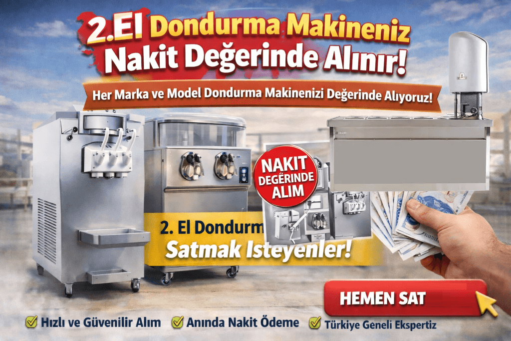 Türkiye’nin dört bir yanındaki işletmeler için ikinci el dondurma makineleri, dondurma reyonları ve süt kaynatma kazanları alım hizmetimiz kapsamlıdır. Elinizdeki ekipmanı değerinde satmak, aynı gün nakit ödeme almak ve hızlı işlem gerçekleştirmek istiyorsanız doğru yerdesiniz.